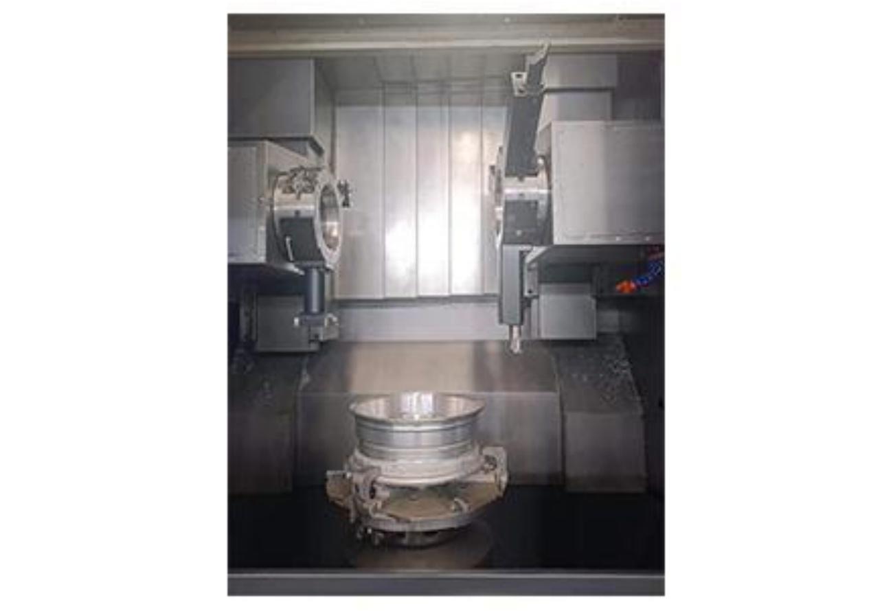 VW24T is a CNC vertical twin-tool holder lathe with wide rectangular hardened guideway, which is a highly efficient machine tool developed for automotive wheel hub machining. The machine has single spindle and double tool holders, controlled by dual-channel CNC system, two six-station servo tool holders can be independently set up and feed each other, and the two tool holders can simultaneously process inner and outer rings of wheel hubs, which is flexible and versatile; one set of control controls two sets of feeds, which has high machining efficiency and covers a small area.